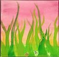 Neat, a grasshopper family on a grass picnic. Eat hardy grasshoppers!