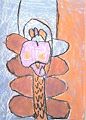 La personne dans cet oeuvre a l'air d'être très contente de se trouver parmi deux beaux arbres. Je les aime beaucoup, surtout cette couleur verte.