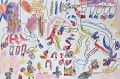 There is so much going on in this piece of art! I also noticed you used only primary colors. Interesting! It would be fun to play I spy with this piece of art :-)
