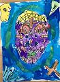 Wow! Remy....I can see many things in this painting A cross, skelton of a head, spinner web on it,. Yellow ghost in left corner , a shark's head lower left corner . Perhaps water all around the head ?So colorful .......I'm sure a Halloween painting, well done....