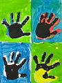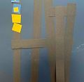 The Dark Blue background is the space of thinking. Creation starts from two dimensions. The dark brown vertical straight lines are mother trees. Charming yellow squares are organic living beings. Human beings are together but not perfectly matched and arranged. The center of attractions is at the top left corner with blue vitality. The imagery on a subconscious level is promising.