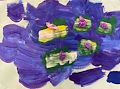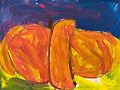 Choice of colour is very attractive. Brushing of colour is also impressive specially upper blue design shows beautiful contrast with magenta colour in lower case. Shapes of apple are not matching with each other. But a child draws as he sees. Here artist is very simple and honest. As a whole the artwork is a naive expression of child psychology.
