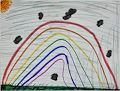 What a pretty rainbow Emma! I like your sun and green grass. Are those black rain clouds?? You are so good at doing art.