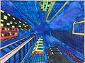 I really like the perspective in this piece. And the pops of eye-guiding color. Nice job.