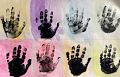 32 fingers and 8 thumbs equals 8 beautiful handprints from 1 handsome boy with 8 high fives!