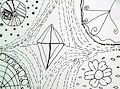 I also agree that the flower is the most zen. It's very lush and gives the feeling of freshness. Like it's being blown by a soft breeze, surrounded by petals. The diamond in the center, surrounded by dashed and dotted lines, reminds me of a kite flowing through the sky. I would love to see what kind of color you would add to this.
