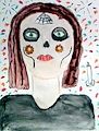 Oooo, a 2-D version of your clay sculpture! Which came first? The sculpture or the drawing? I like how dark the pupil looks in this picture. It looks as deep as a black hole, like a real eye.