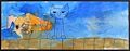 This is very cool, Harvey. I see so many different things: a dog flying a kite or a flag, a dog with long blue ears... I love it!