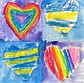 The striped rainbow heart is my favorite. It’s beautiful! And the blue and yellow striped hearts remind me of cute bumblebees!
