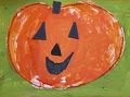 What a great pumpkin! Very happy piece of art .