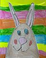 Easter is right around the corner so it was a great time to draw a bunny. I love all the colorful stripes in the background. Another very creative picture Mia. I am very proud of you.