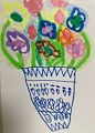 What a beautiful arrangement of flowers!!! I love all the different colors you used and the blue vase is so pretty. I am very proud of you Mia. This picture is a great job. Keep up the good work!!!!!