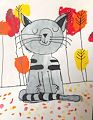 I love this smiling cat and the autumn leaves.