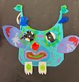 This is a scary mask! I really like the rosy pink cheeks and the big black eyebrows. Did you have fun making it? Keep up the GREAT work. Love you, Porter.