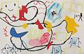 Porter, this artwork is AMAZING! I love it. You used lots of different shapes, beautiful colors, and a big, black wandering line. I especially like the big yellow square guy up at the top and the little triangle people down in the corner. Keep up the good work!