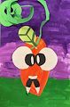 Porter, your background is beautiful! Your skinny jack-o-lantern has very big eyes, scary looking fangs, and an amazing curly vine. Keep up the good work! We love you.