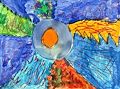 I love this penguin!! He looks so happy and cool floating on his iceberg. The red and orange background are really pretty. Did you give this guy a name? Love, Mama