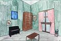 I love the perspective and all the details. The piano has the foot pedals and even the black and white keys, so intricate. I'm drawn to the bookcase, particularly the shelves. You captured the concept that depending on the height of the viewer, some shelves you will see the underside, and some the top side. Of course, the curtains would be pink ! Good job !