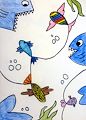I love the color blocking and the use of positive and negative space. I can feel the fish moving!