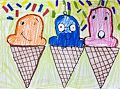 Each colorful scoop has a unique personality. (I’m sure there’s a story behind them!) The large, bright confetti adds movement, and the crisscross pattern on the cones provides bold texture - the whole composition makes me think of a delightful summer vacation.