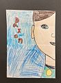 Oh, Daxon! What a very interesting & creative way to draw your self portrait. I love seeing that you are smiling because you are quite handsome when you smile & it shows others that you are happy. I love the colors you used, too! Your choice of lettering for your name is really cool! Great job, Daxon! I love you!