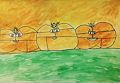 I love the detail of the pumpkins with personalities! Very creative! Colorful too! Good job Abigail!