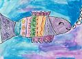 Lainey, you always amaze me with your drawings. This is a pretty neat fish. Looks like she is smiling and happy and blowing bubbles. I'm guessing it's a girl because of all the purple colors you used. She must remind you of your vacation last summer. Good job!
