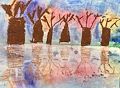 This looks like a cool forest with the tree reflecting on the water