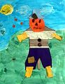 I love your scarecrow collage! It took a lot of work to make that pumpkin head and the cloudy sky and the fun shirt! The buttons and the knee patch are a nice touch. Keep up the good work! XXOO Grandma K