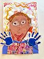 This self-portrait looks great! You must have had a lot of fun making the handprints! XXOO Grandma K