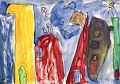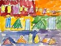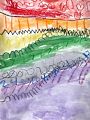 What a fantastic landscape picture! The shapes are so interesting and colorful. You are a cool artist!