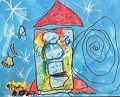 Such a beautiful cabin drawn in glitter glue! Nice work.