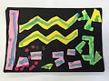 Love the colors and great job cutting the shapes out ~ especially the zig zag! Way to go! ?