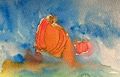 Teddy!! I love these whales playing in the Ocean under a big beautiful colorful sky. Thank you for making interesting Art! Nanatoo