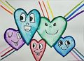 Dear Emma, I was delighted to see your new artwork! I like all the colors you chose. I like the expressions on the faces of the hearts! I also like the colored lines behind the hearts! This piece is my favorite so far! Love you! Nanny