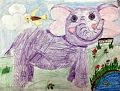 I love how many different things are going on. My eyes first went to the elephant but then I saw the meadow full of flowers and then the bird. As I looked closer I found the pond and a bench! Looks like a beautiful place, and the detail on the elephants trunk and knees is really cool.