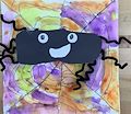 Spiders are supposed to be scary, but your spider is so cute! I love the colors you used for the spiderweb background!
