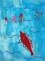 Dear Collin: I love your creativity and the vivid colors you chose for this artwork. Your choice of sea creatures is fantastic. I’m so very proud of you. Gramma