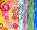 Wow Addi, this is absolutely one of my favorites. I love the colorful and different design on each side with the detailed curious dog and mysterious cat. GREAT JOB!!