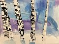 This reminds me of Grammy's house. When I was little we had a lot of white birch trees. I love the colors you chose for the sky. It's just wonderful!
