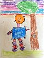 What a creative robot Maddie! I love all the shapes you use to make it so unique! You used so many colors to make this picture so beautiful! You are such an artist!