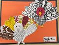 Hey Buddy. Good start Can you finish the paint, marker or crayon colour on these turkeys. Show me them. Thank you.