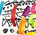 Wow, I love the pops of color on top of the black and white background! Did you have fun playing with those paper strips and gluing them down? Proud of you!