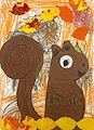 Hudson, I absolutely LOVE your fall squirrel!! You did a great job adding texture to his fur, and I like all of the leaves that are falling, or are about to fall. Keep creating, Huggy!