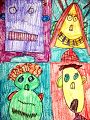 I love the second one that was on your art paper. Colors in the hair and the teeth. I like all of them.
