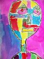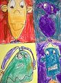 Aaron, I love your different faces with differend expressions. One is happy, one is sad, one is angry and the other one looks kind of dizzy or sick. I enjoyed the colors you used on the faces and the backgound colors. Keep up the good work. I look forward to getting pictures all the time from you and get excited when I see a new one. Love you lots and kisses to you, Kiah, Paige, Mom & Dad. Grandma
