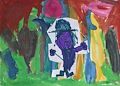 What a cool "Mat Man," James! I love the deep purple color you chose for him, and it looks like you worked really hard on putting him together. The way you painted the background in those shades of green and dark colors really makes Mat Man pop! This is a wonderful piece for your project.