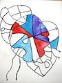There were several standards that you had to achieve in order to have a successful project. First did you draw a geometric composition using a ruler and a compass correctly? If so, good for you. Next was the large triangle the focal point of this art? Did you use 2 different color families so that the large triangle really stood out. If you answered YES to all those questions, good for you! You have achieved all the art standards. This was not an easy task. You found out that it takes PRACTICE to use a ruler and compass correctly. These skills should also be used in your math classes now and in the future. Beautiful results. Add a statement to your project here that also answers these questions. A job well done. Keep up the good work.