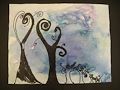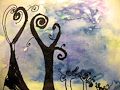 11/1/10: Now, Kellen, this is simply outstanding! You have gone from Picasso to Charles Burchfield in one leap. What a great forest! It is literally dancing off the page and out of the picture. And better yet is the almost luminious coloration of the sky. The wash of color is a terrific contrast to the well formed trees. By George, this is a small masterpiece. tata