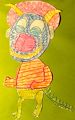 Dear Reina, Now, here's a creature I'd love to meet! A little bit devil, a little bit imp, a little bit fashion dude, a little bit curious...a little like you! I love the colors, the balance, the different stroke pattern, and the shading. A fun piece of work and use of your imagination. Keep 'em coming! Much love, Monga